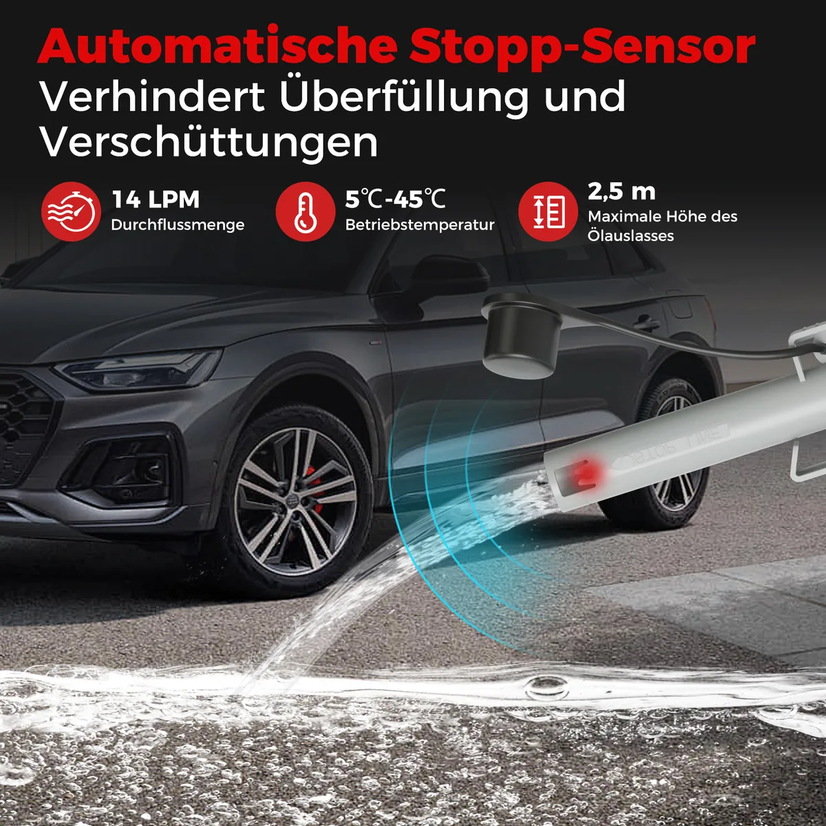 - Degalų siurblys su automatinio sustabdymo jutikliu apsaugo nuo perpildymo ir išsiliejimo.