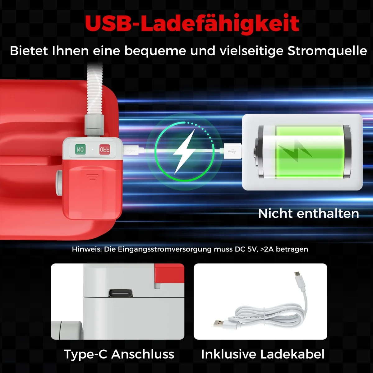 • Maitinimas: 4 x AA baterijos (nepridedamos) arba USB DC 5 V, > 2 A