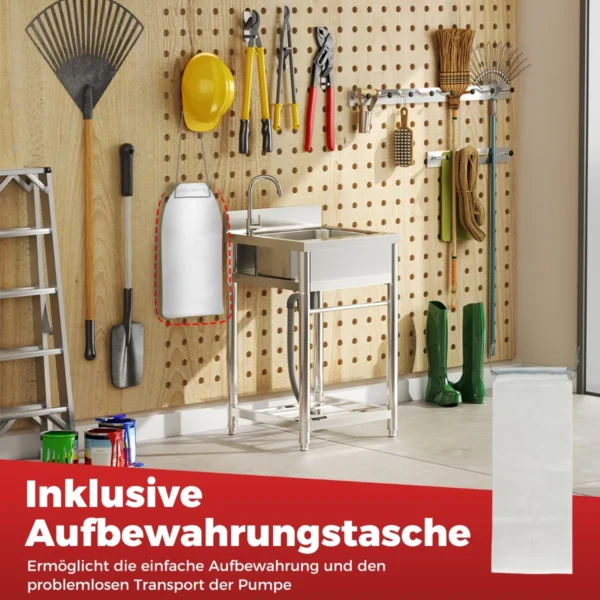 • 130 cm ilgio išleidimo žarna užtikrina iki 12 l/min srautą.