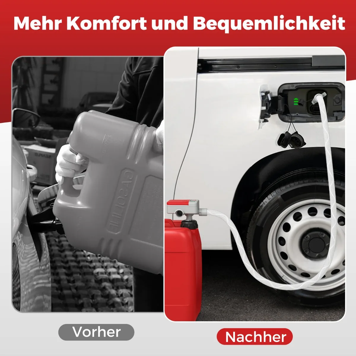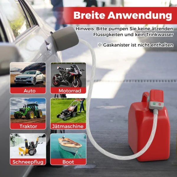 • Tiekimas su 3 adapteriais skirtingų dydžių bakams, tinka benzinui, dyzelinui, žibalui ir buitiniam vandeniui.