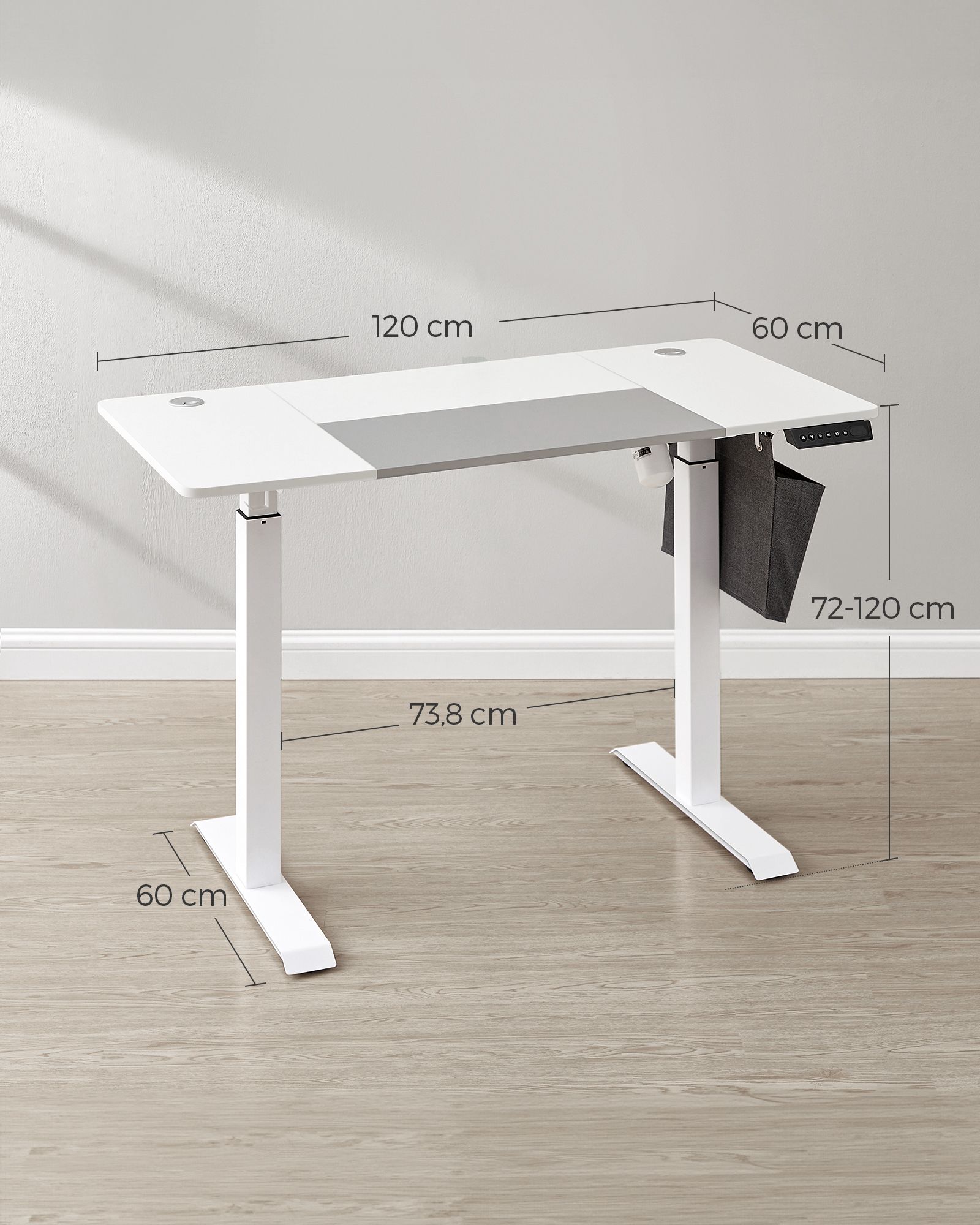 Elektrinis reguliuojamo aukščio rašomasis stalas 60x120x120cm., baltos/pilkos spalvos