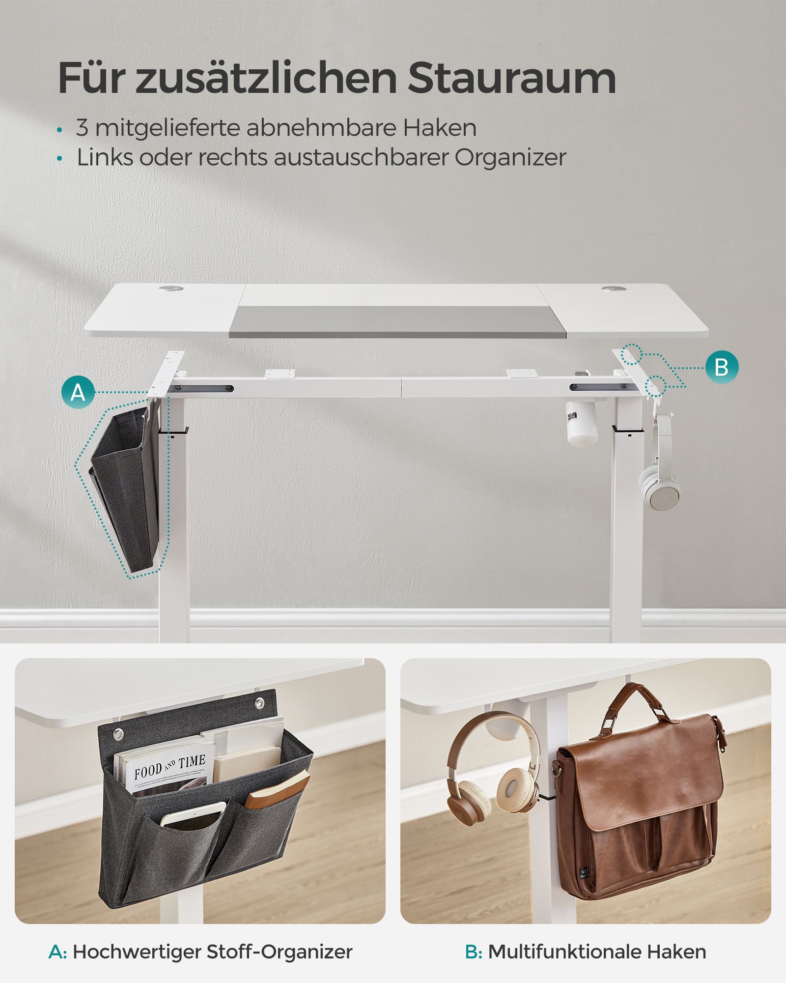 Šis stalas leidžia lengvai reguliuoti aukštį nuo 72 cm iki 120 cm, todėl galite pasirinkti optimalų darbo aukštį, kuris atitinka jūsų poreikius. Tvirtas plieninis rėmas ir kokybiškas stalviršis užtikrina stabilumą ir patikimumą, o elegantiškos baltos ir pilkos spalvos derinys suteikia modernumo jūsų darbo erdvei.