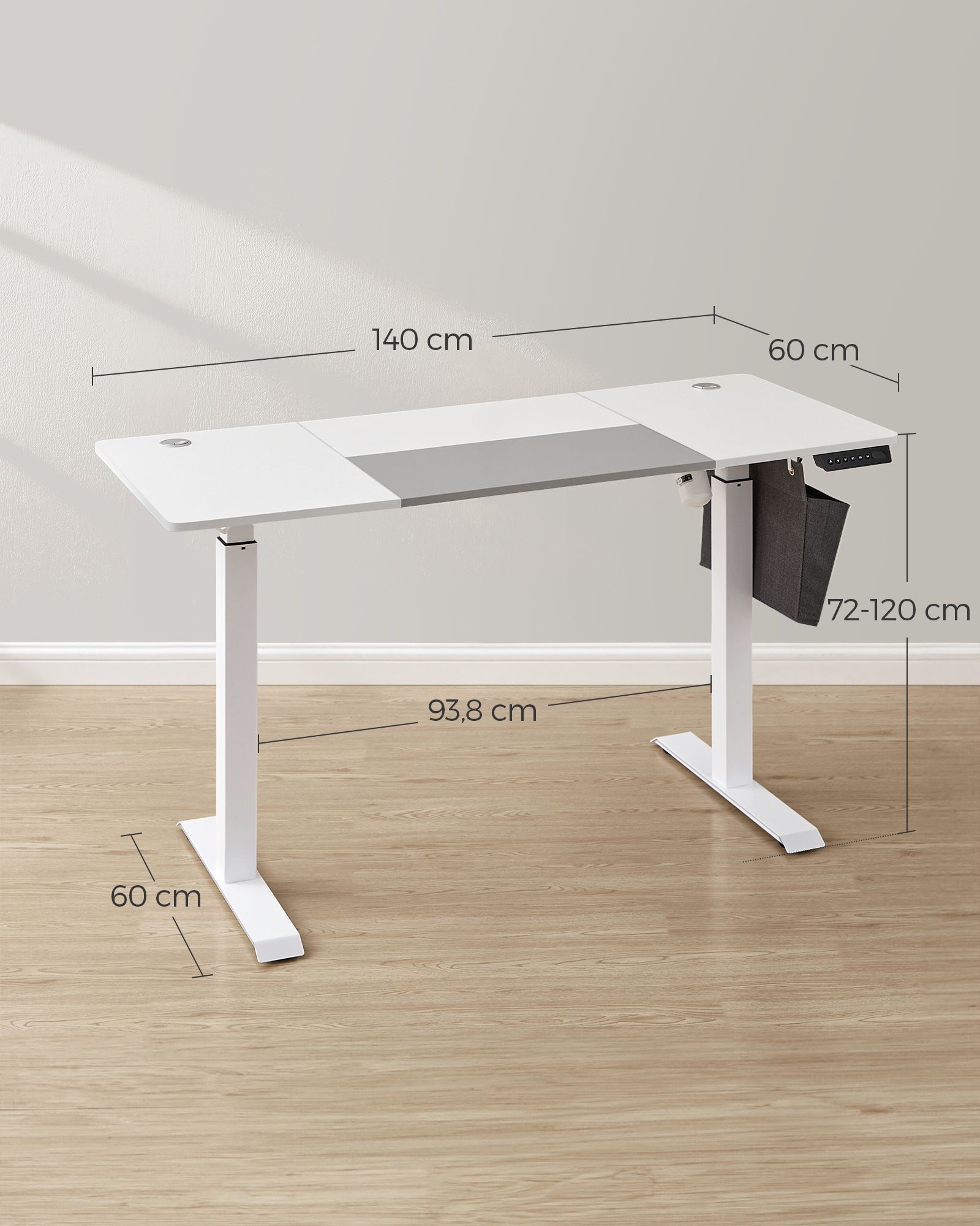 Elektrinis Reguliuojamo Aukščio Rašomasis Stalas 60x140x120cm, Baltos/Pilkos Spalvos