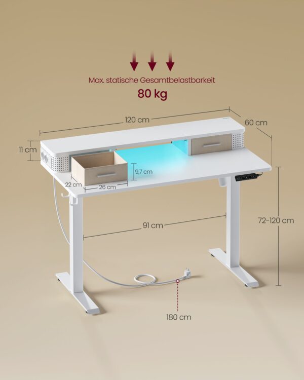 Šis elektrinis reguliuojamo aukščio rašomasis stalas yra idealus pasirinkimas tiek namų biurui, tiek profesionaliai darbo aplinkai. Investuokite į savo darbo komfortą ir efektyvumą su šiuo išskirtiniu baldu.