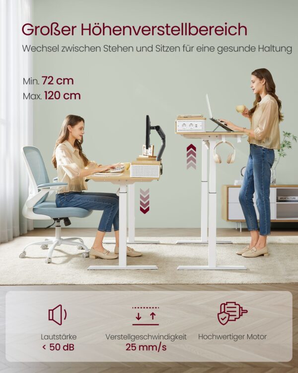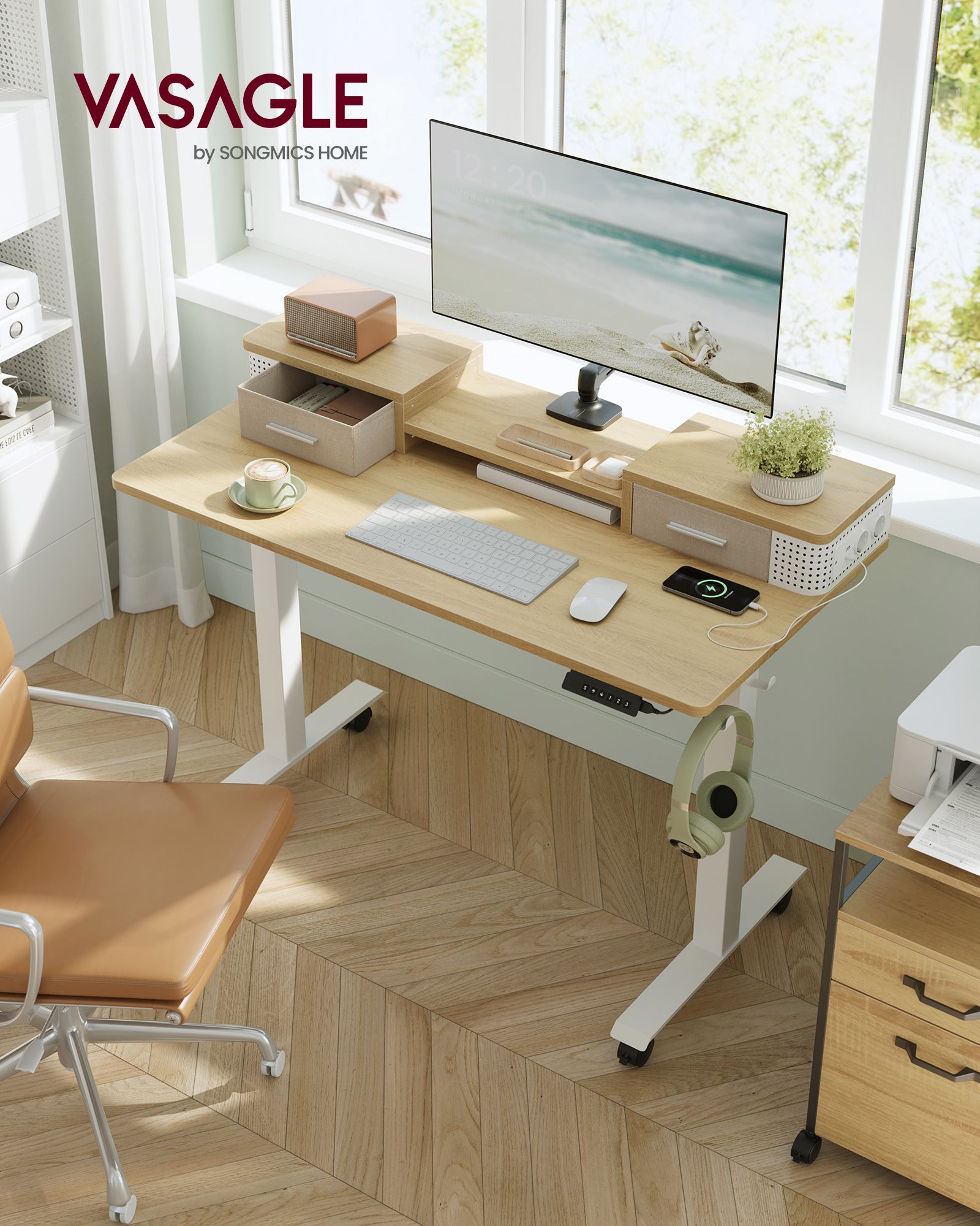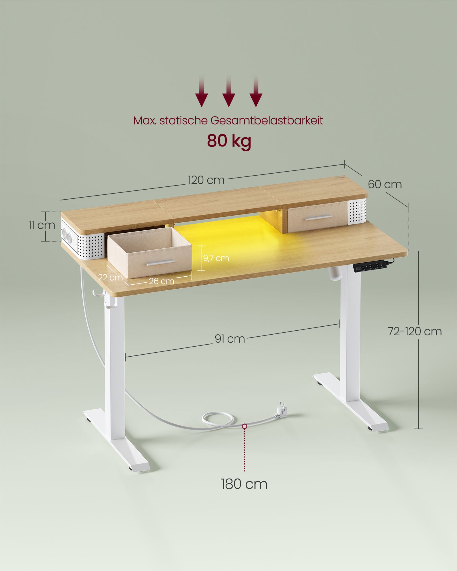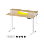Elektrinis reguliuojamo aukščio rašomasis stalas su apšvietimu 60x120x120cm., baltos/šviesiai rudos spalvos