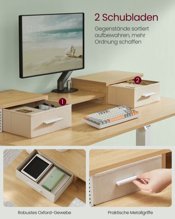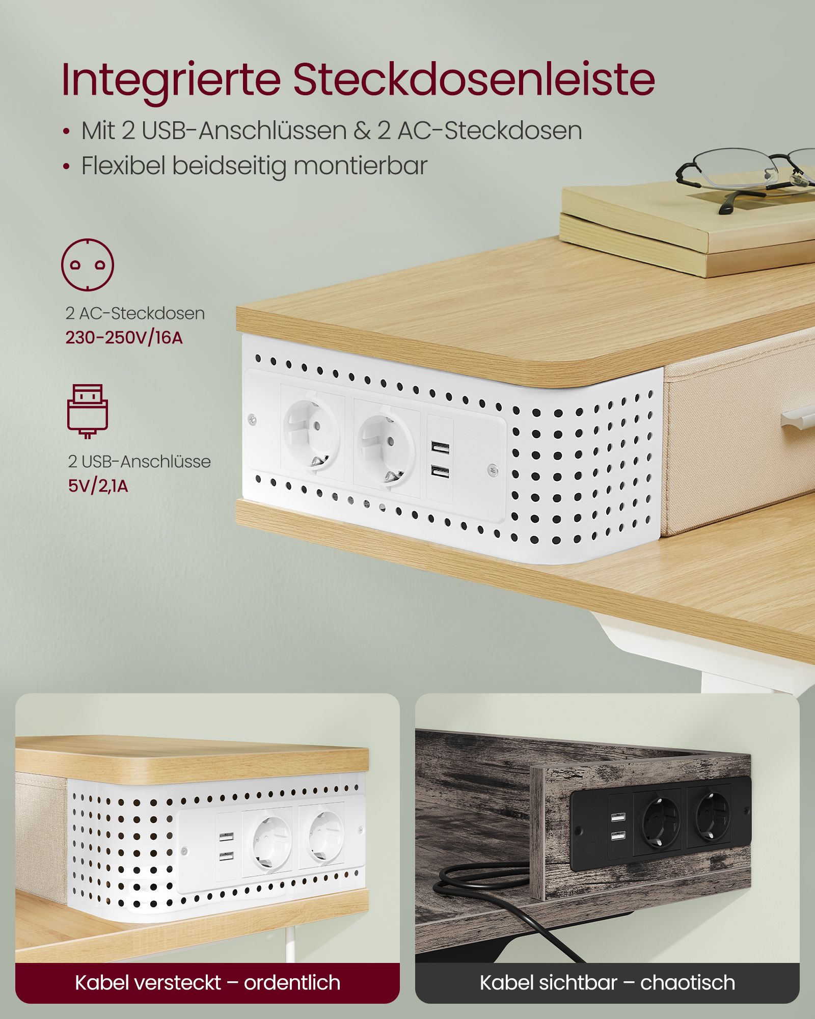 Patirkite darbo komfortą ir stilių su mūsų elektriniu reguliuojamo aukščio rašomuoju stalu. Šis stalas yra puikus pasirinkimas tiems, kurie vertina ergonomiką ir modernų dizainą. Su integruotu apšvietimu ir elegantiška baltos bei šviesiai rudos spalvų kombinacija, jis puikiai tiks bet kuriame interjere.