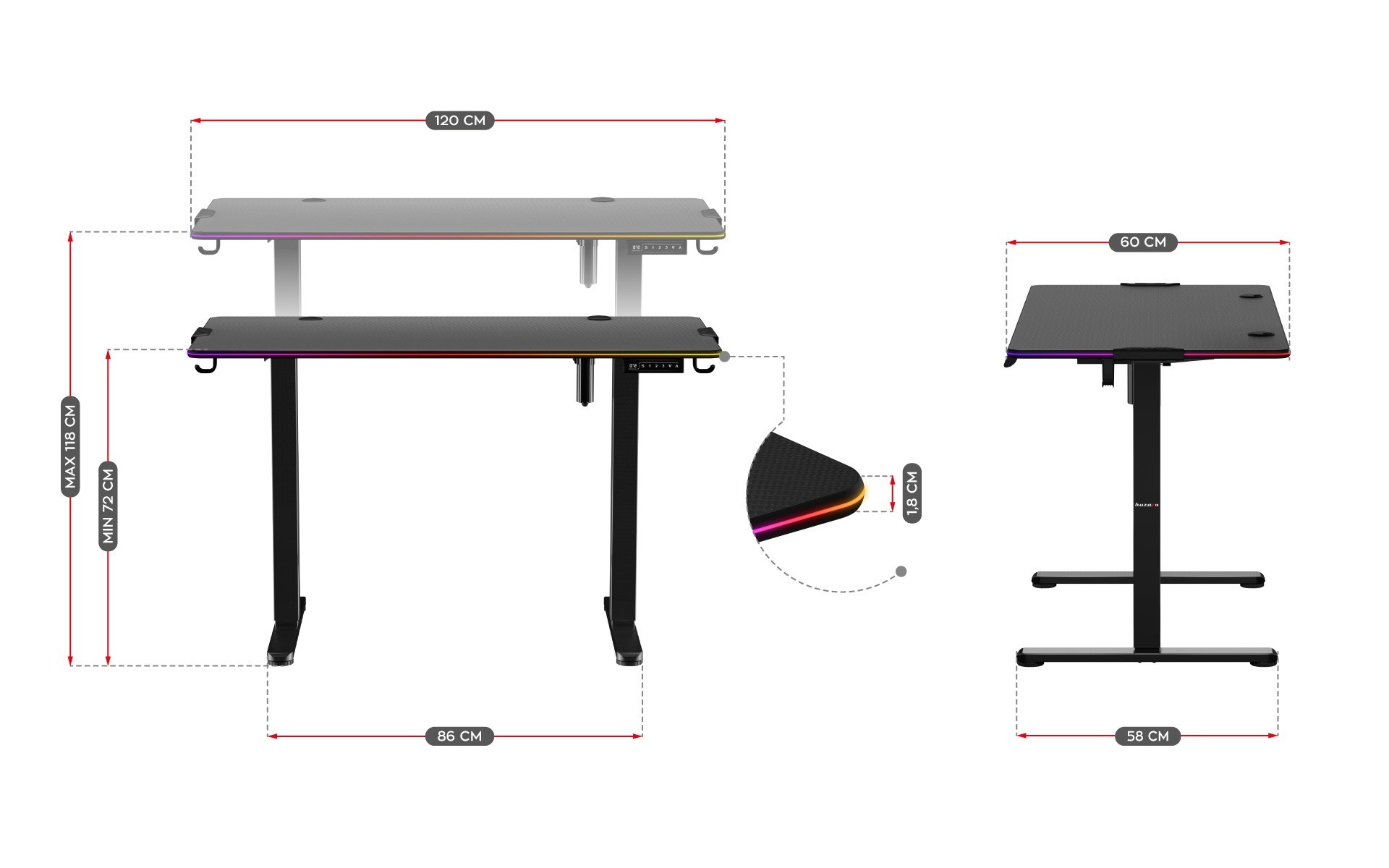 Elektrinis stalas Huzaro Hero 8.2 RGB LED Juodos spalvos