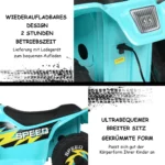 - Patogi plati sėdynė bei porankiai suteikia komfortą važiuojant.