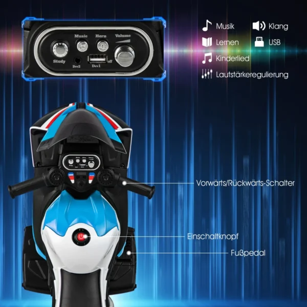 Elektrinis vaikiškas motociklas 82,5x42x54 cm yra puikus pasirinkimas vaikams, kurie nori patirti pirmuosius važiavimo įspūdžius. Šis 6V elektrinis triratis padeda lavinti motoriką ir rankų bei pėdų koordinaciją, užtikrindamas saugų ir patogų naudojimąsi.