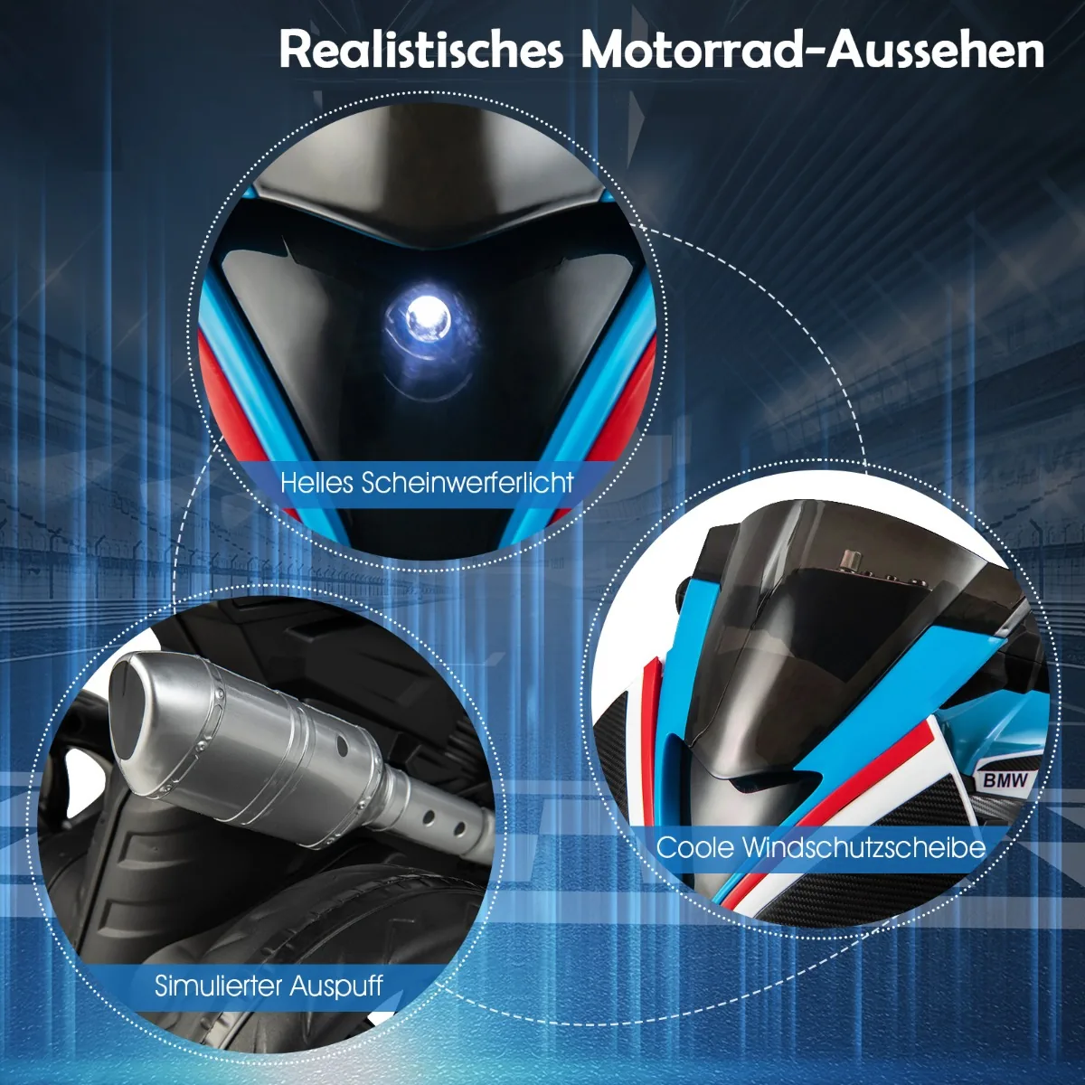 - Turi ryškų priekinį žibintą, priekinį stiklą, lipdukus ir imituotą išmetamą vamzdį.