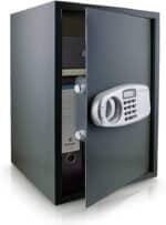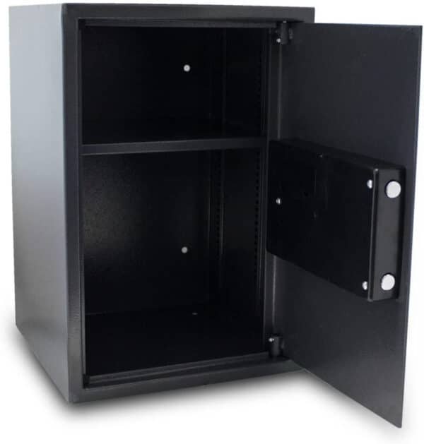 ; ELEKTRONINIS SAUGUS GRAFITAS ;Pakuotės matmenys 55 X 40 X 38 ;SVORIS; 20 KG APRAŠYMAS: Apsaugokite savo vertybes su šiuo tvirtu elektroniniu seifu. Tai puiki vieta saugoti vertingus daiktus ir svarbius dokumentus. Seifas turi skylutes, skirtas pritvirtinti prie sienos ar grindų. Seifas yra su nuimama lentyna. Galimybė atidaryti elektronine spyna arba raktu. Dvigubas užraktas užtikrina saugų ir apsaugotą nuo neleistino atidarymo. SAVYBĖS: – Seifas turi skylutes tvirtinimui prie sienos arba grindų – Elektroninė programuojama kombinuota spyna – Dvigubas užrakinimas – Nuimama ir reguliuojama lentyna – Įvedus neteisingą kodą 3 kartus smeigtuku užrakinamas seifas (vėliau galima atidaryti tik su raktas) – Galima atidaryti elektronine spyna arba raktu – Komplekte 2 raktai APSKAIČIUOTA: 1 x Seifas su tvirta elektronine spyna 2 x avariniai raktai 2 x tvirtinimo ankeriai …ce 1 x instrukcija lenkų kalba Atsisiųsti vadovą – nuoroda Techniniai duomenys: Išoriniai matmenys: 350mm x 520mm x 360mm (plotis/aukštis/gylis) Vidiniai matmenys: 345mm x 515mm x 300mm (P/H/G) Plieninių sienų storis: 2mm Plieninių durų storis: 4mm Svoris: 20,0 kg