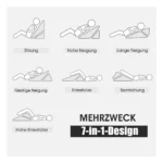- 7 viename universali pagalvė, pritaikoma pagal skirtingus komforto poreikius.
