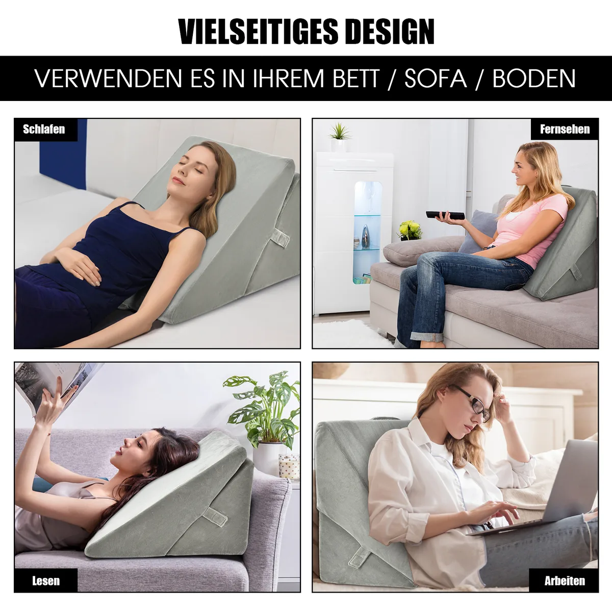 Ergonominė reguliuojama pagalvė 58×83,5×27 cm pilkos spalvos suteikia patogią atramą galvai, kaklui, nugarai bei kojoms. Ši universali pagalvė yra skirta sumažinti diskomfortą miego metu arba ilsintis, taip pat tinka įvairioms pozicijoms ir poreikiams.