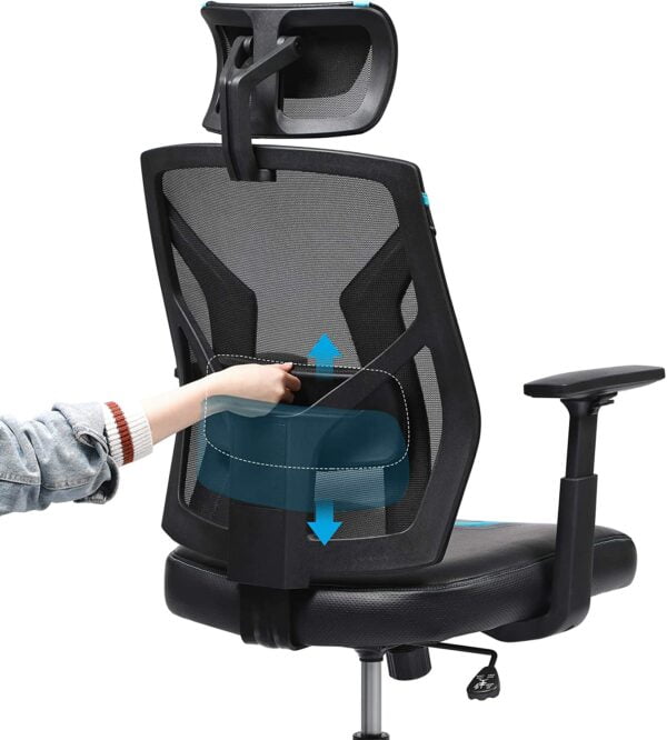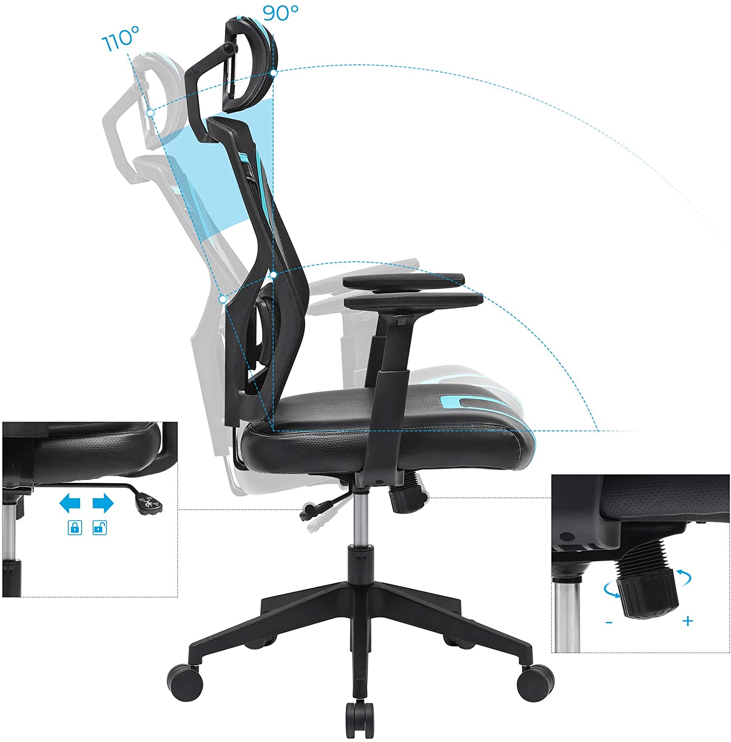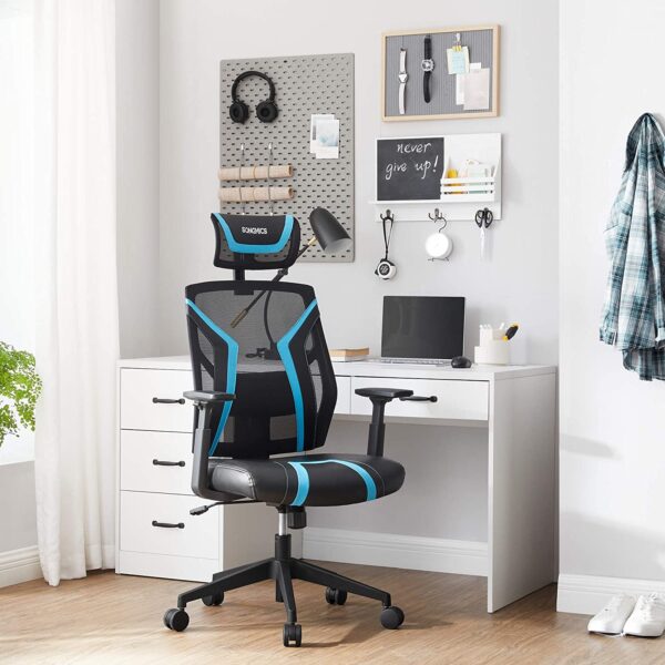 Padidinkite savo produktyvumą ir pagerinkite nuotaiką su ergonomiška biuro kėde, juoda/mėlyna. Taisyklinga laikysena padaro darbo valandas malonesnes. Raskite savo idealią laikyseną su šia biuro kėde: jūsų kūnas atsipalaiduos, protas bus produktyvesnis, o 8 darbo valandos praskris nepastebimai.