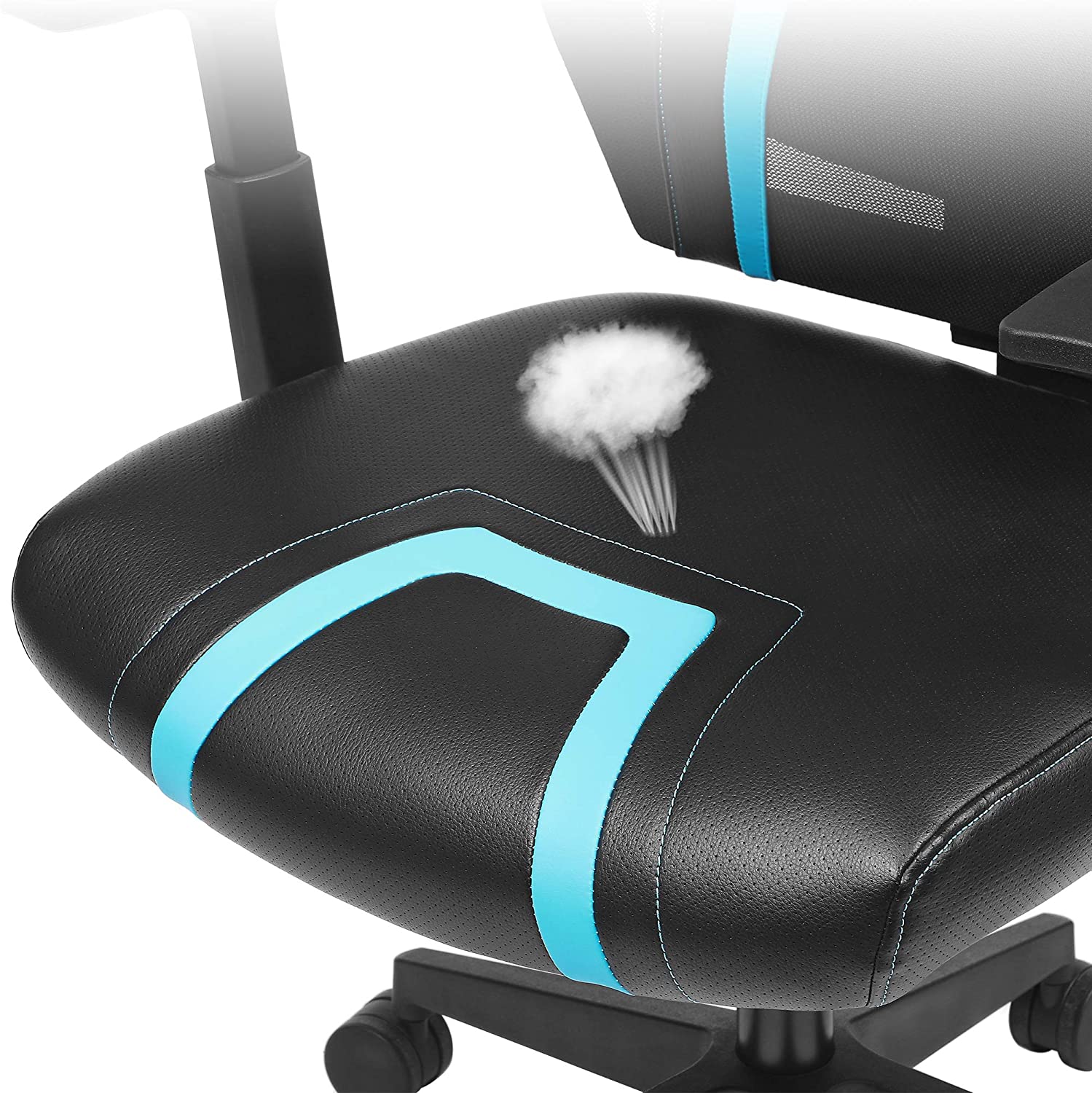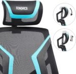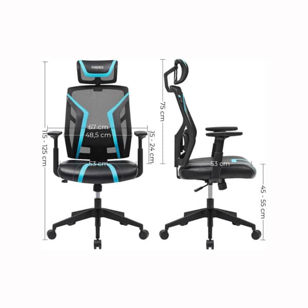 Kaip galite padidinti savo produktyvumą su šia pasukama kėde? Juodos ir mėlynos spalvų derinys suteikia jūsų darbui patrauklumo ir naują išvaizdą. Reguliuokite sėdynės aukštį, porankius, galvos atramą ir juosmens atramą, kad rastumėte idealią sėdėjimo padėtį, atitinkančią jūsų ekrano aukštį. Perforuota sėdynė ir tinklinis atlošas užtikrina kėdės kvėpavimą.