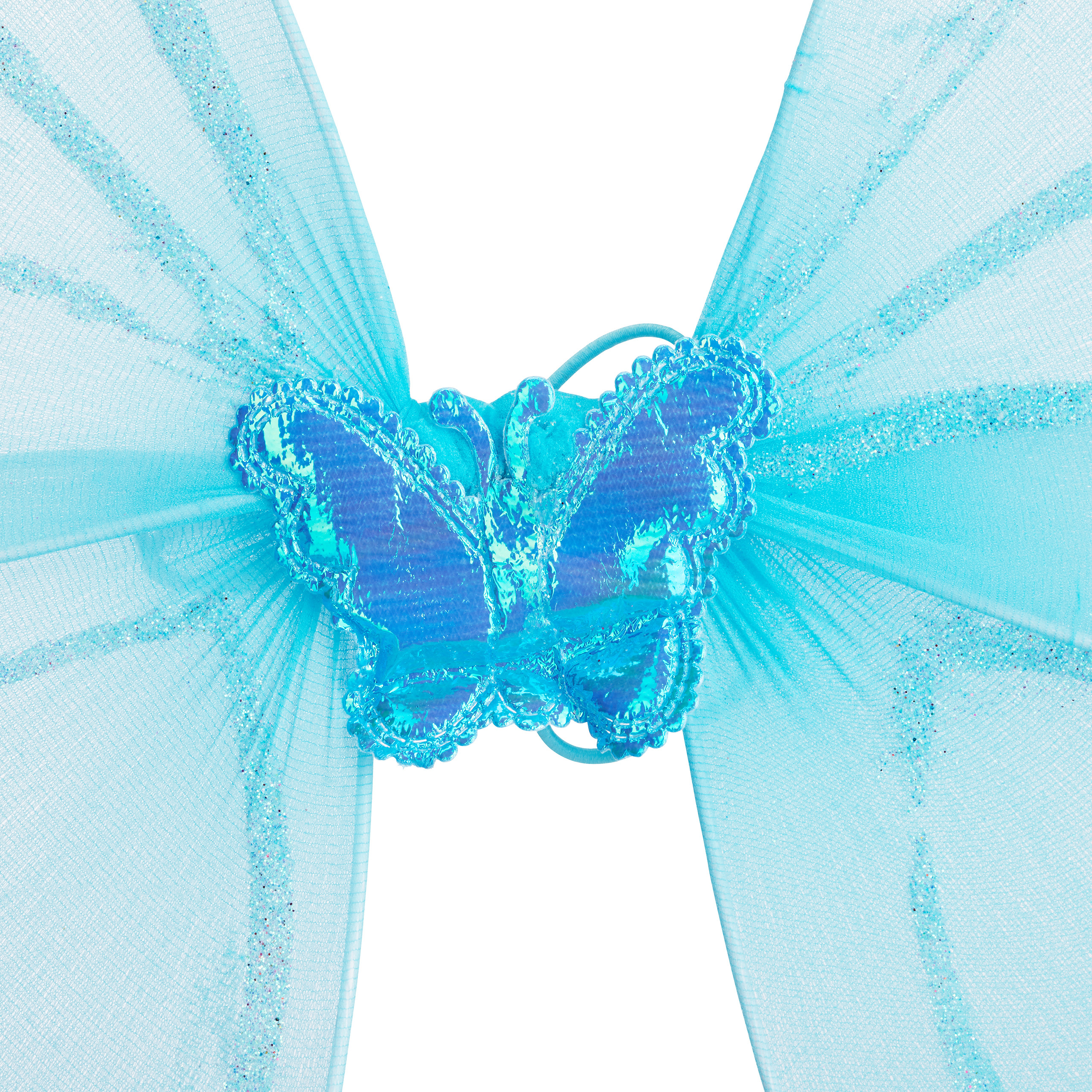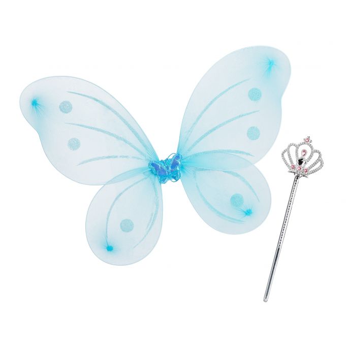 Fėjos sparnai su burtų lazdele, šviesiai mėlynos/sidabrinės/baltos spalvos