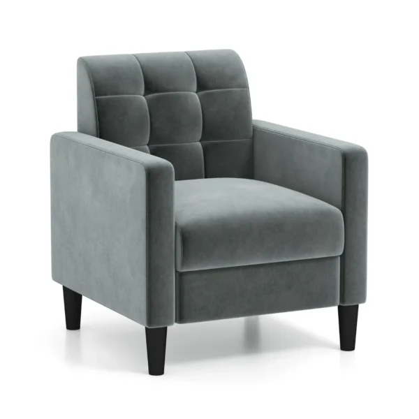 - Aksominis fotelis su kuokštuotu atlošu ir patogiais porankiais.