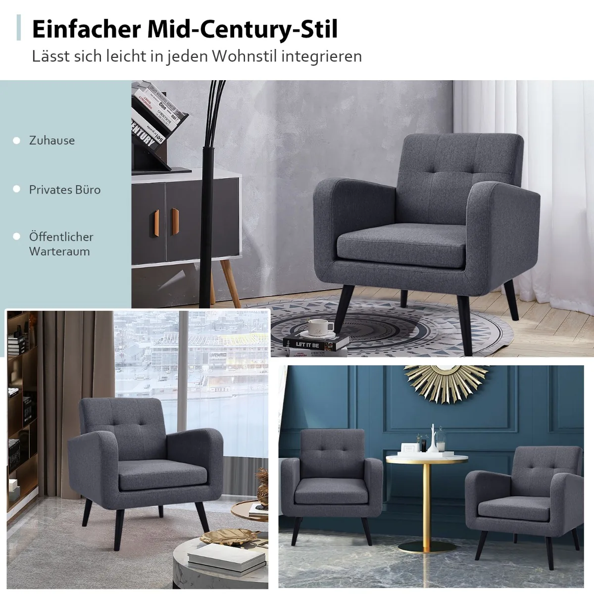 Fotelis 71×73,5×82,5 cm tamsiai pilkos ir juodos spalvos – patogus sprendimas jūsų svetainei ar poilsio zonai. Šis akcentinis fotelis pasižymi ergonomišku dizainnu, padedančiu atsipalaiduoti po įtemptos dienos.