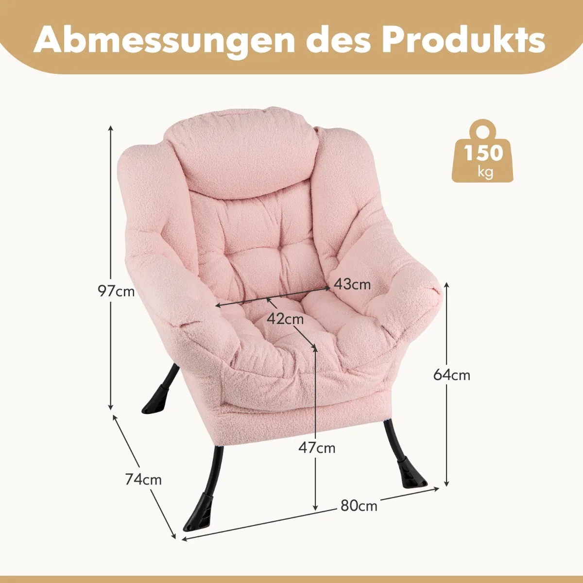 - Minkštas Sherpa paminkštinimas ir PP medvilnės užpildas gerina sėdėjimo komfortą.