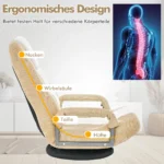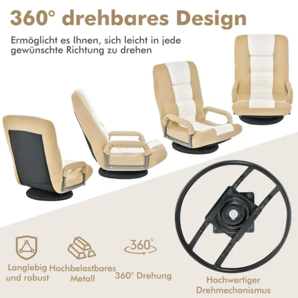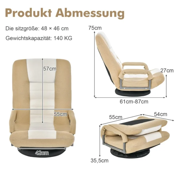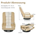 Fotelis 87x55x75cm, smėlio/juodos spalvos – tai patogi grindų žaidimų kėdė, skirta ilgesniam sėdėjimui ir atsipalaidavimui. Ergonomiškas dizainas su reguliuojamu atlošu ir 360° pasukimu užtikrina komfortą žaidžiant, skaitant ar žiūrint televizorių. Šis sulankstomas fotelis puikiai pritaikytas tiek žaidėjams, tiek laisvalaikiui ant grindų.