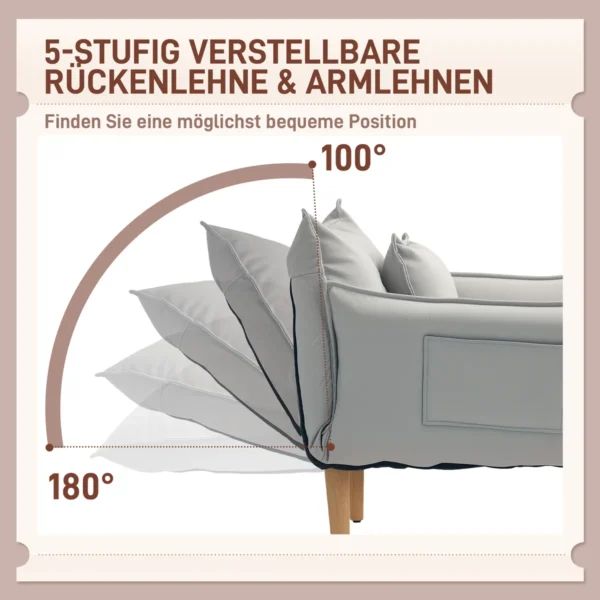 - ✔ Nugarą ir porankius galima reguliuoti iki penkių padėčių, – 110°00°, – 11200° 160°, 180°