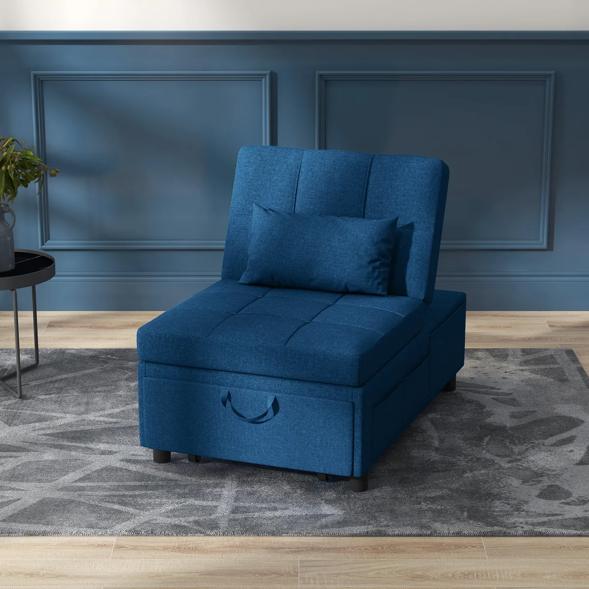 Atpalaiduokite stilingai HOMCOM sulankstoma kėdė su miego funkcija. Pasirinkite patogią kampą iš trijų kėdės lovos atlošo padėčių ir mėgaukitės pertrauka skaitydami, atsipalaiduodami, žiūrėdami televizorių ar snūstelėdami. Miegamojo krėslo sėdynė paminkštinta putplasčiu, lygiu, liną primenančiu užvalkalu, tvirtu mediniu rėmu ir naudingomis šoninėmis kišenėmis.