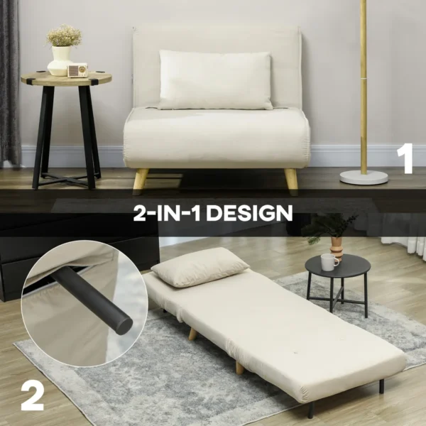 Atraskite šią HOMCOM sulankstomą sofą su miego funkcija. Ši elegantiška sofa su miego funkcija įspūdingai derina stilių ir funkcionalumą. Mėgaukitės atpalaiduojančiomis valandomis, patogiai atsilošę nusnauskite ar žiūrėkite filmą. Dėl kompaktiško dizaino ši miegamoji sofa idealiai tinka mažiems kambariams ir, jei pageidaujama, gali būti paversta praktiška svečių lova, ant kurios lankytojai gali patogiai įsitaisyti.