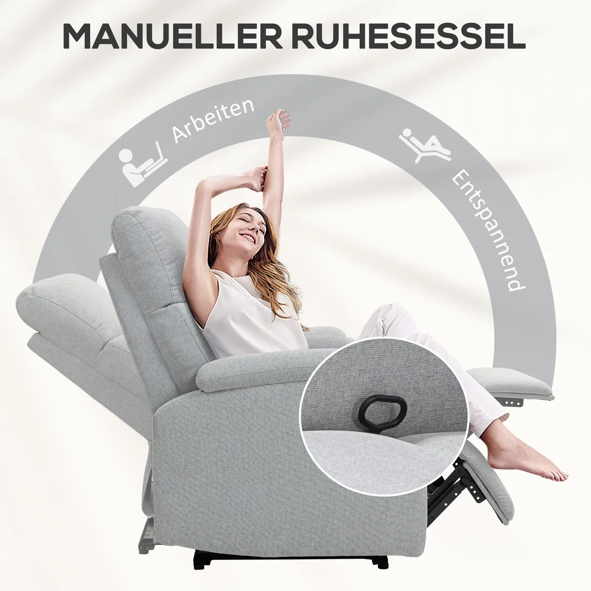 • ✔ Televizoriaus fotelio atlošą galima pakreipti iki 60°, naudojant rankinį valdymą. Pėdų atramą galima reguliuoti kulnais / kojomis