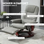Atsipalaiduokite po įtemptos dienos su HOMCOM gultu. Dėl 360° pasukamo pagrindo mėgaujatės visiška judėjimo laisve, o tvirta medinė konstrukcija užtikrina stabilumą. Visiškai paminkštintas užtikrina maksimalų komfortą, o reguliuojamas atlošas ir rankinė kojų atrama užtikrina visišką atsipalaidavimą. Su elegantišku dirbtinės odos užvalkalu ši kino kėdė puikiai derina grožį ir stilių. Pasilepinkite prabanga, kurios nusipelnėte.
