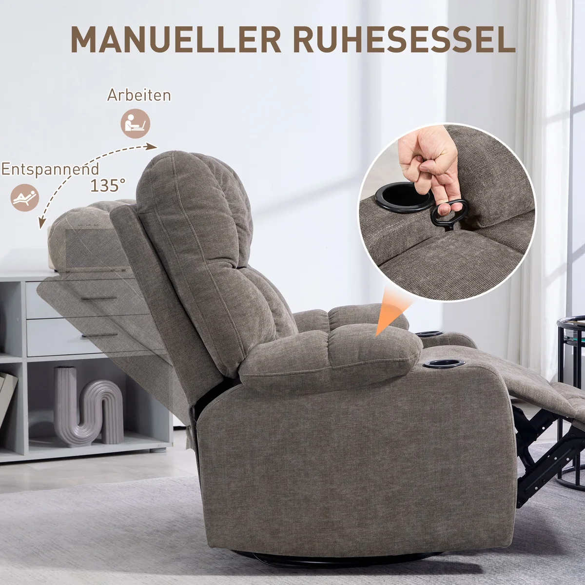 - ✔ Atsipalaidavimo kėdės atlošas gali būti pakreiptas iki 135°, lengvai reguliuojamas su sagtimi optimaliam atsipalaidavimui