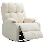 Užsėskite į HOMCOM atlošą, kur patogumas ir funkcionalumas. Šis televizoriaus fotelis su atlošu, kurį galima palenkti iki 135°, kurį galima lengvai priderinti prie idealaus pasvirimo kampo naudojant sagtį, ir pėdų atramą, kurią galima pailginti spaudžiant koją, šis televizoriaus fotelis kviečia atsipalaiduoti stilingai. Mėgaukitės maksimalia judėjimo laisve dėl pasukimo funkcijos ir nuostabios siūbavimo funkcijos, kuri švelniai išsklaido kasdienį įtampą.