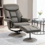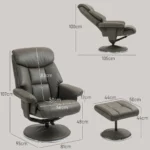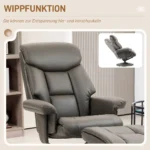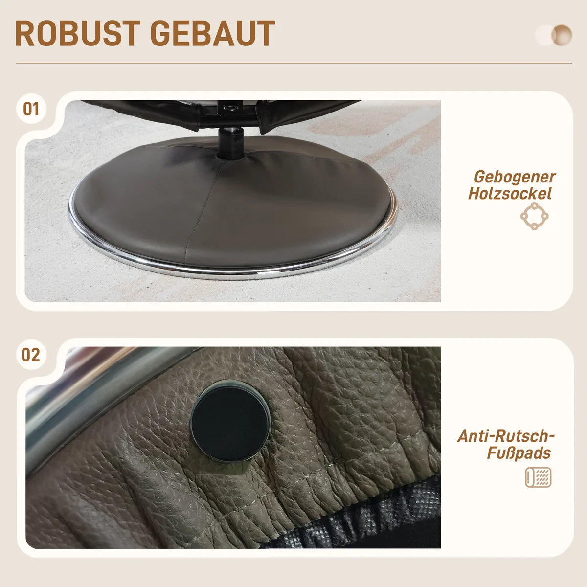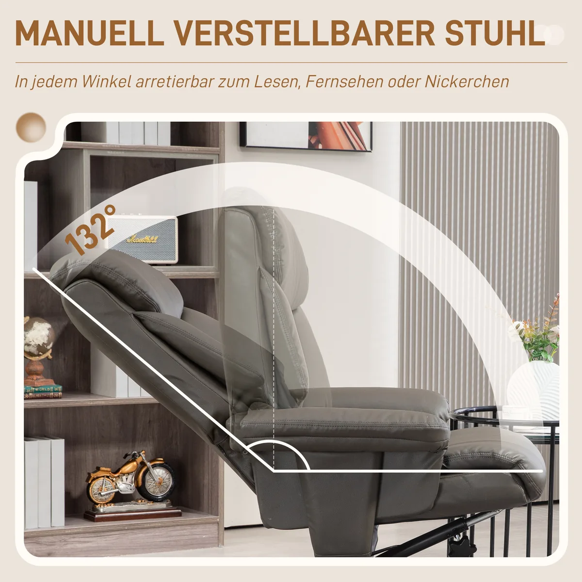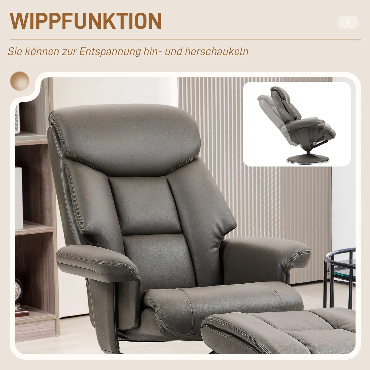 Atsipalaiduokite stilingai su televizoriaus foteliu ir atitinkama taburete iš HOMCOM – jūsų naujojo partnerio, kad atsipalaiduotumėte! Pasilenkite iki 132° ir švelniai siūbuokite nuo kasdienio gyvenimo šurmulio su praktiška svirties funkcija. Mūsų poilsio kėdė, aptraukta elegantiška dirbtine oda ir paremta tvirtu rėmu, suteikia dangišką komfortą. Idealiai tinka kaip patogus ir elegantiškas svetainės fotelis, fotelis skaitymui ar žaidimų fotelis.