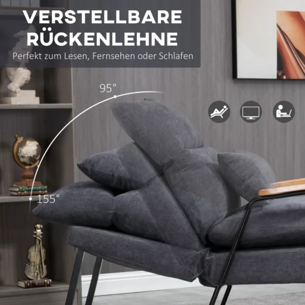 Palepinkite save pelnytu poilsiu ir atsipalaiduokite šiame patogiame, minkštame HOMCOM fotelyje. Rinkinį sudaro kėdė porankiais ir kėdutė kojoms, kurių abiejų sėdynė yra storai paminkštinta ir elegantiškas, minkštas velveto užvalkalas. Tvirta plieninė konstrukcija užtikrina tvirtą stovą ir subalansuotą pusiausvyrą. Atsisėskite, ištieskite kojas ir užmerkite akis, kad pasinertumėte į vaizduotę ir visiškai atsipalaiduotumėte.
