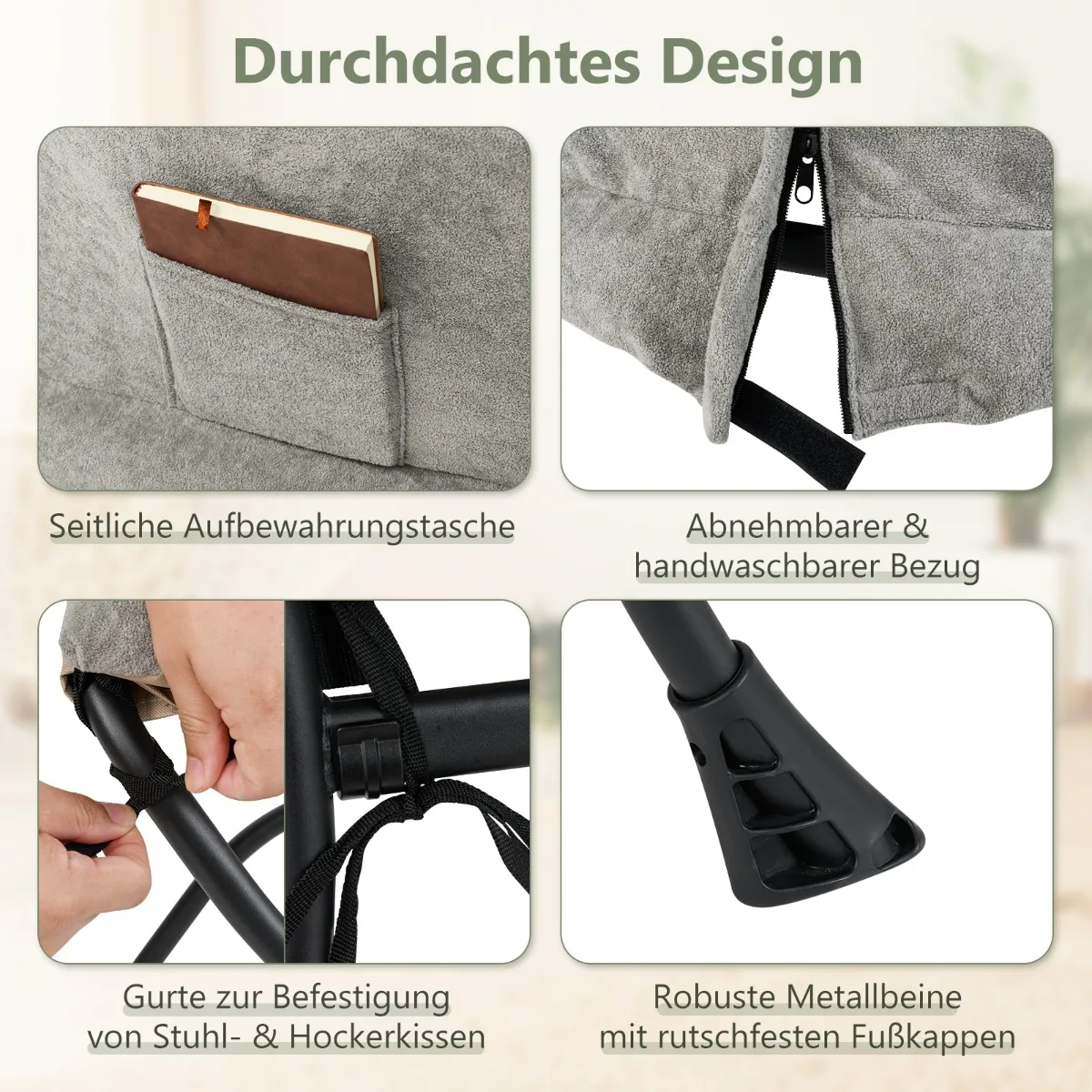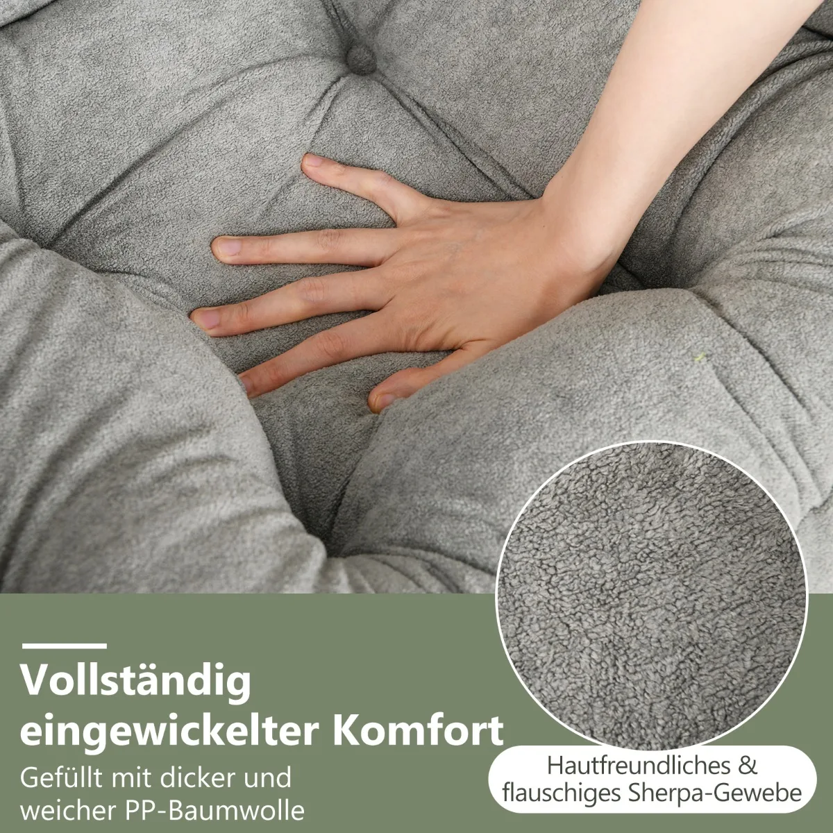- Sulankstomas pufas su dvipuse pagalvėle (Sherpa audinys ir Oksfordo audinys) leidžia lanksčiai naudoti.