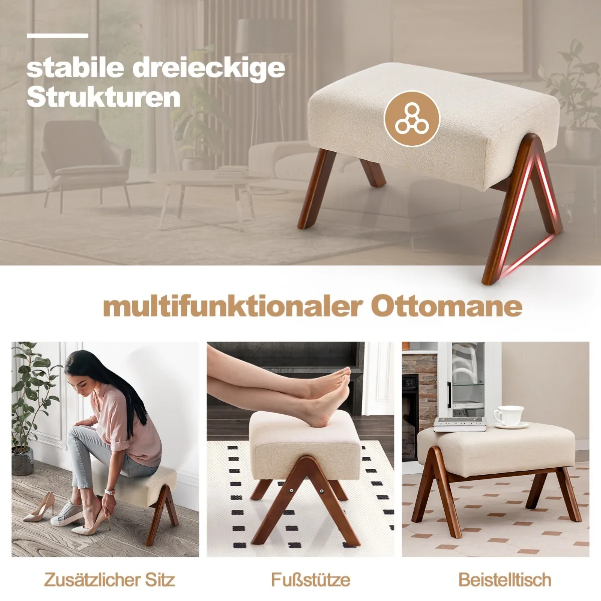 - Taburetė gali būti naudojama kaip kojų atrama, papildoma sėdynė arba šoninis staliukas.