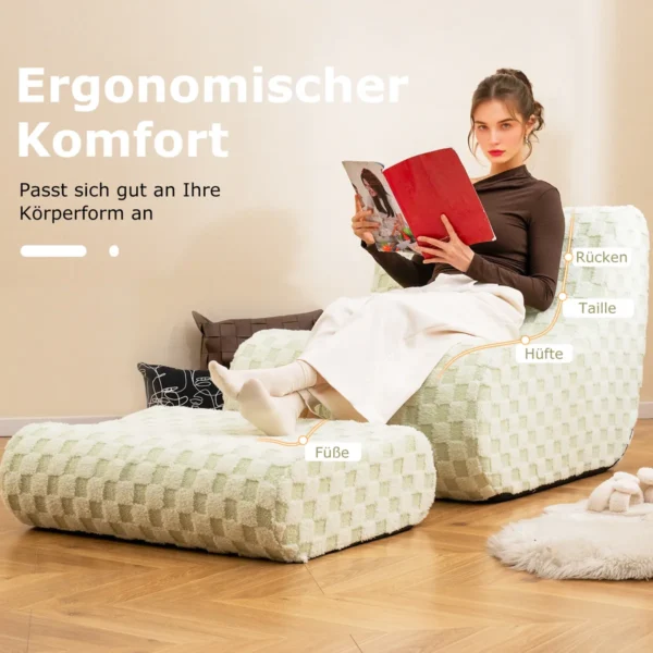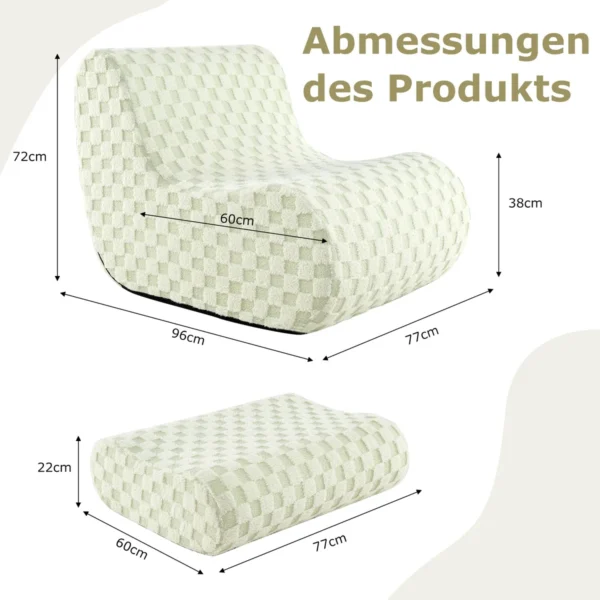 - Ergonomiška sėdmaišio kėdė ir atraminis pufas skirti patogiam sėdėjimui ir atsipalaidavimui.