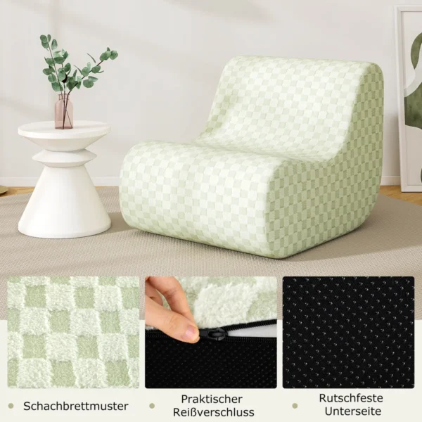 Fotelis su pakoju žalia spalva puikiai tinka jaukiam poilsiui, skaitymui ar darbui namuose. Ergonomiškas dizainas ir minkštas meškiuko aksomas suteikia komfortą, o pufas atlieka papildomos kėdutės ar šoninio staliuko funkcijas.