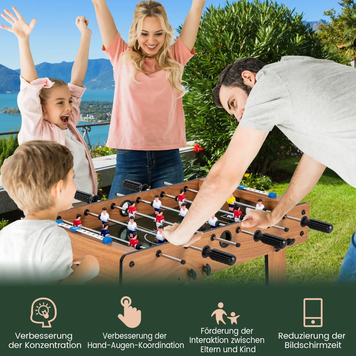 Futbolo stalas 69x60x71 cm yra puikus pasirinkimas norintiems smagiai praleisti laiką su šeima ar draugais. Šis kompaktiškas ir sulankstomas stalas suteikia galimybę žaisti įvairaus amžiaus žaidėjams, lavinant rankų ir akių koordinaciją bei koncentraciją. Futbolo stalas tinka tiek namų aplinkai, tiek poilsio zonoms.