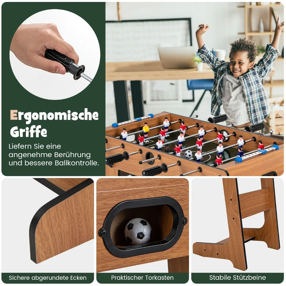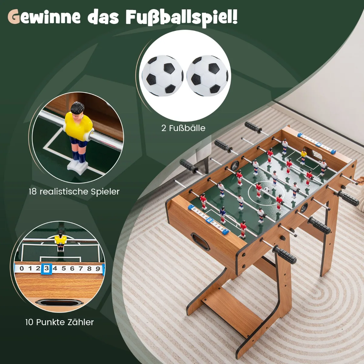 - Kompaktiškas dizainas leidžia stalo futbolo stalą laikyti ir perkelti nesudėtingai.