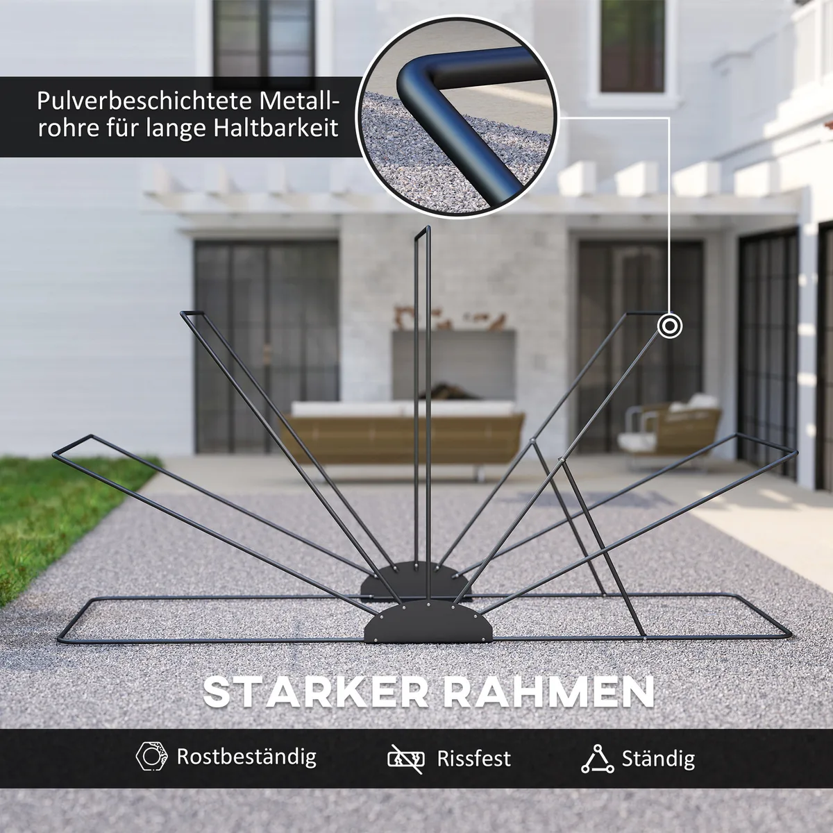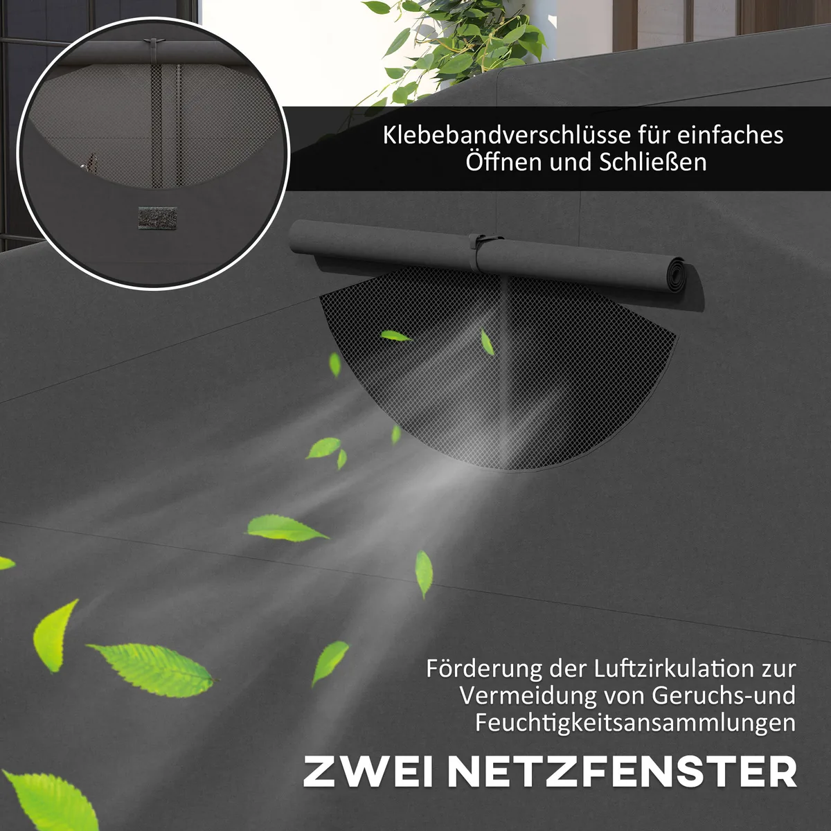 Patirkite „Outsunny“ motociklo užvalkalą, pagamintą iš 600D Oksfordo audinio, kuris užtikrina optimalų vandens atsparumą, dulkes ir UV apsaugą. Tvirta motociklų garažo metalinė konstrukcija yra atspari rūdijimui ir įtrūkimams, o stoglangiai skatina ventiliaciją, todėl jūsų motociklų garažas yra erdvus. Idealiai tinka dviems motociklams, dviračiams ar sodo įrankiams, šis motociklų garažas sujungia funkcionalumą ir eleganciją.
