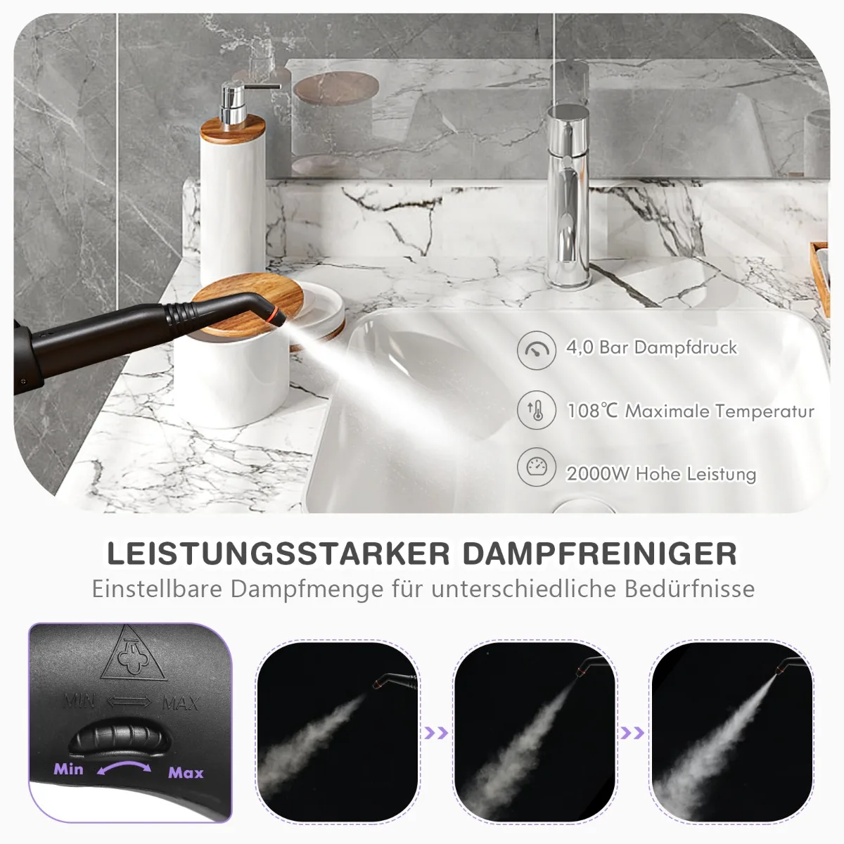 - Galingumas: 2000 W su garų temperatūra iki 108°C ir 4 barų slėgiu.