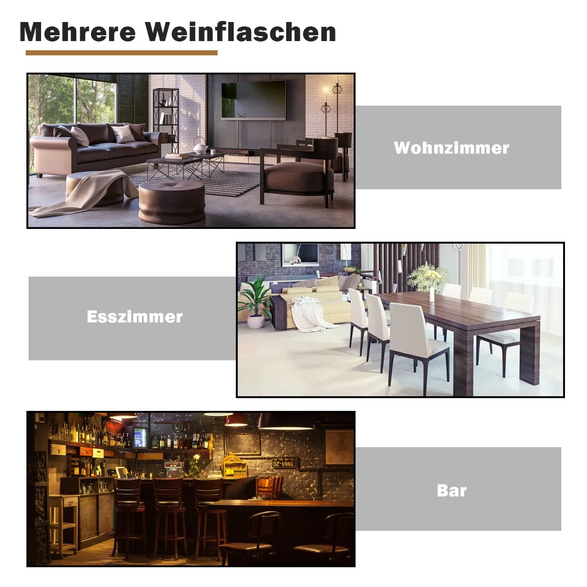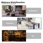 - Viduje yra vietos penkiems įvairaus dydžio vyno buteliams ir kelios lentynos indams ar papildomiems daiktams.
