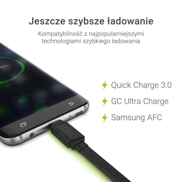 GCmatte Micro USB laidas Plokščias 25 cm su greito įkrovimo palaikymu