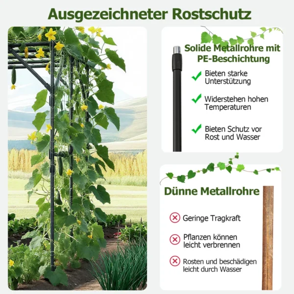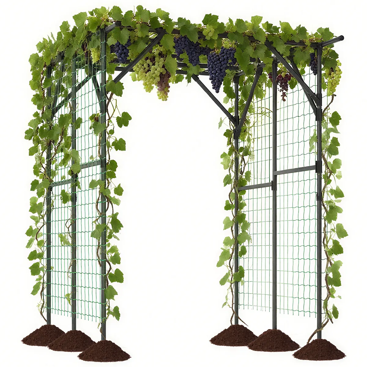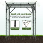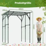Gėlių arka 200x150x197 cm juodos spalvos suteikia patikimą atramą vijokliniams augalams. Ši didelė metalinė arka padeda augalams geriau augti, pagerina oro cirkuliaciją ir saulės spindulių pasiekiamumą jūsų sode. Ji tinka įvairiems augalams, tokiems kaip rožės, pomidorai ar agurkai, ir gali būti naudojama kaip dekoratyvinis įėjimas ar poilsio zona.