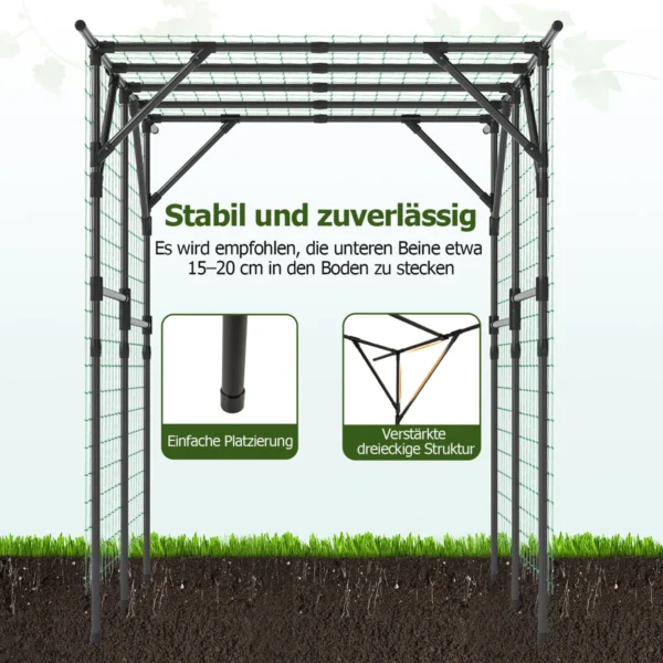 - Matmenys: 200 x 150 x 197 cm (plotis x gylis x aukštis), suteikiantys pakankamai vietos vijokliniams augalams augti vertikaliai.