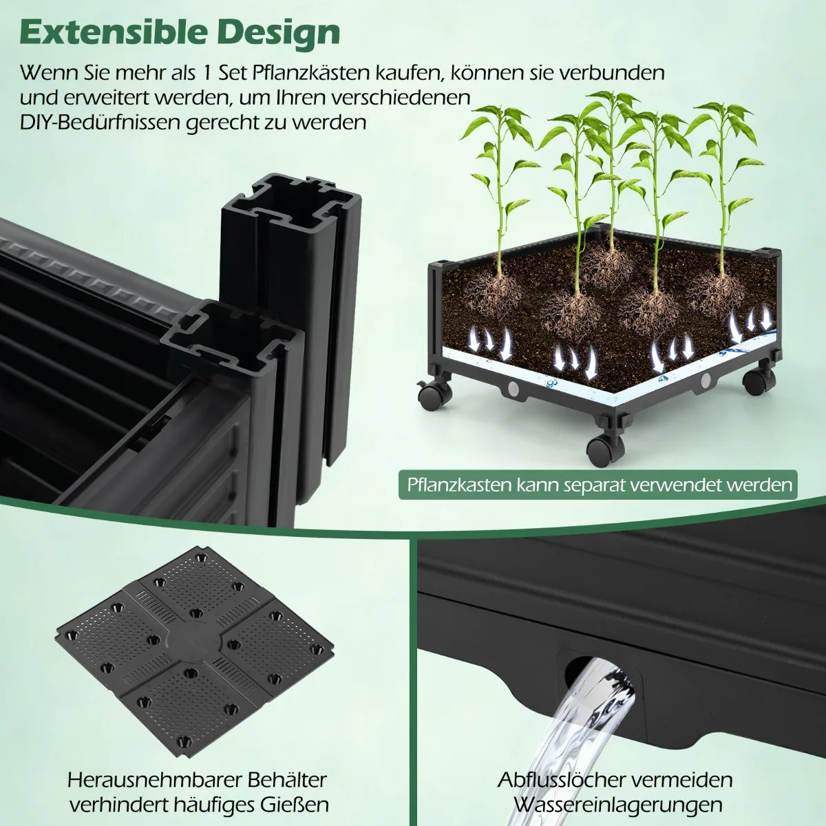 - Išplečiamas dizainas leidžia jungti kelis įrenginius, pritaikant erdvę sodui.