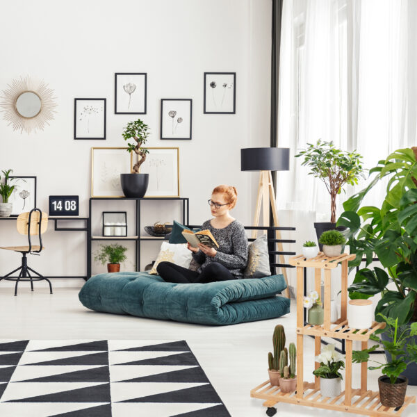 - Mobilumas: Įrengtas 4 ratukais, todėl lengvai perkeliamas iš vienos vietos į kitą, kad galėtumėte keisti savo interjero išdėstymą pagal poreikį.