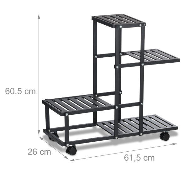 Gėlių stovas ant ratukų su 4 lentynomis 60,5×61,5x26cm., juodos spalvos