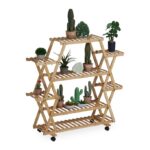 Gėlių stovas ant ratukų su 8 lentynomis 110x114x36cm., šviesiai rudos/juodos spalvos