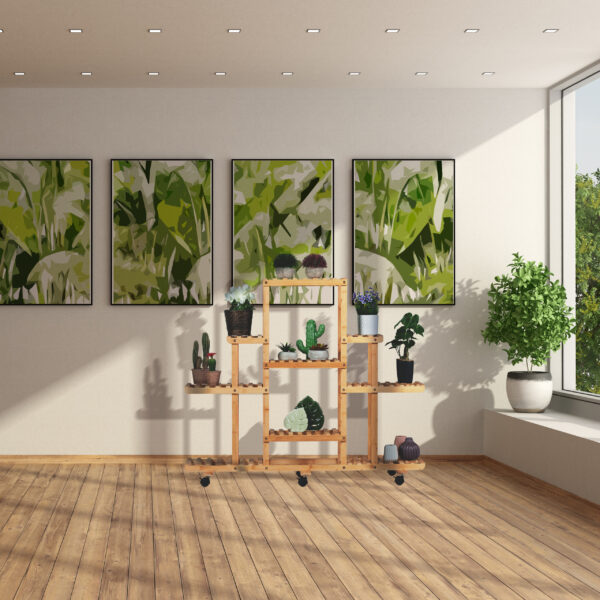 Gėlių stovas ant ratukų su 9 lentynomis